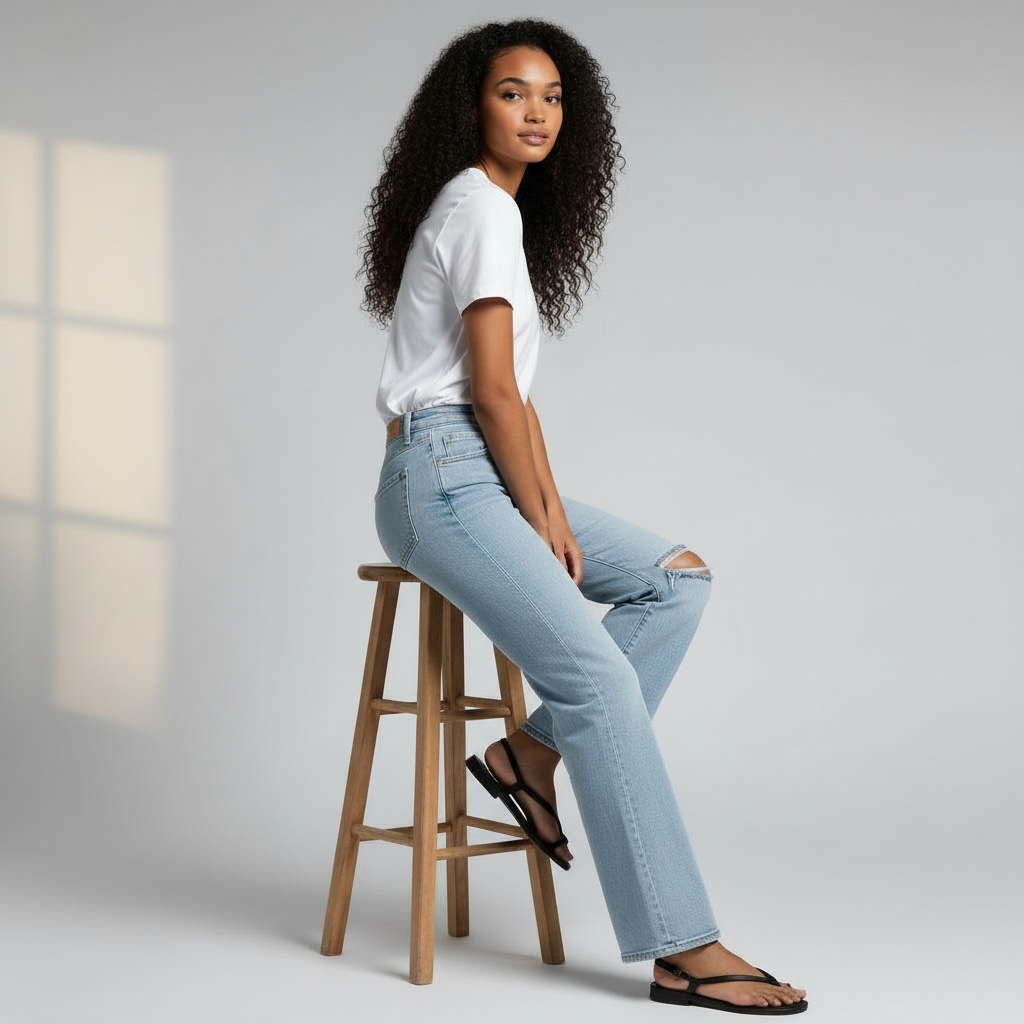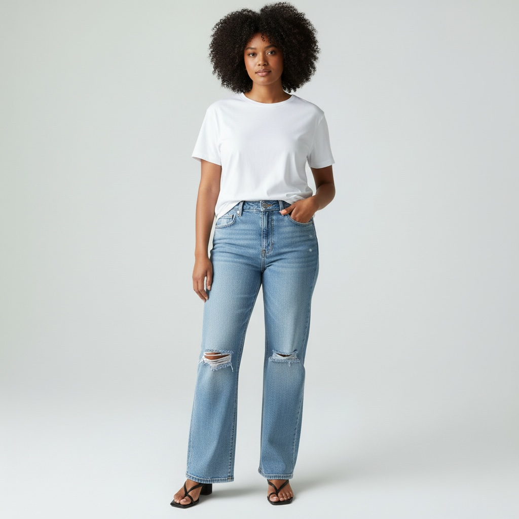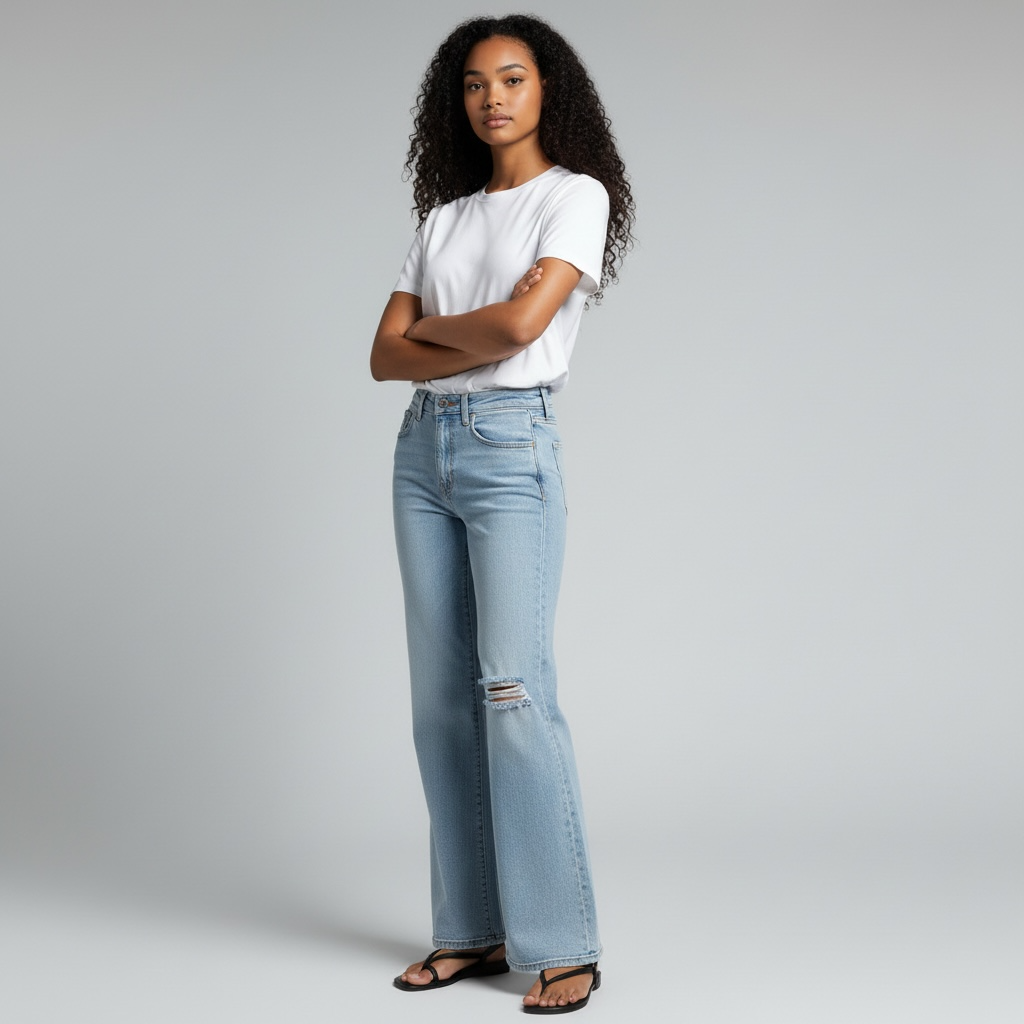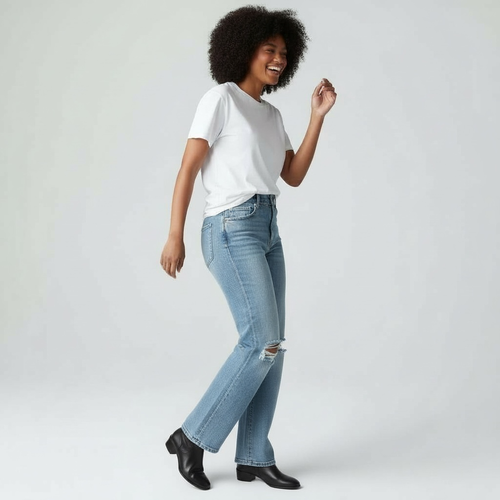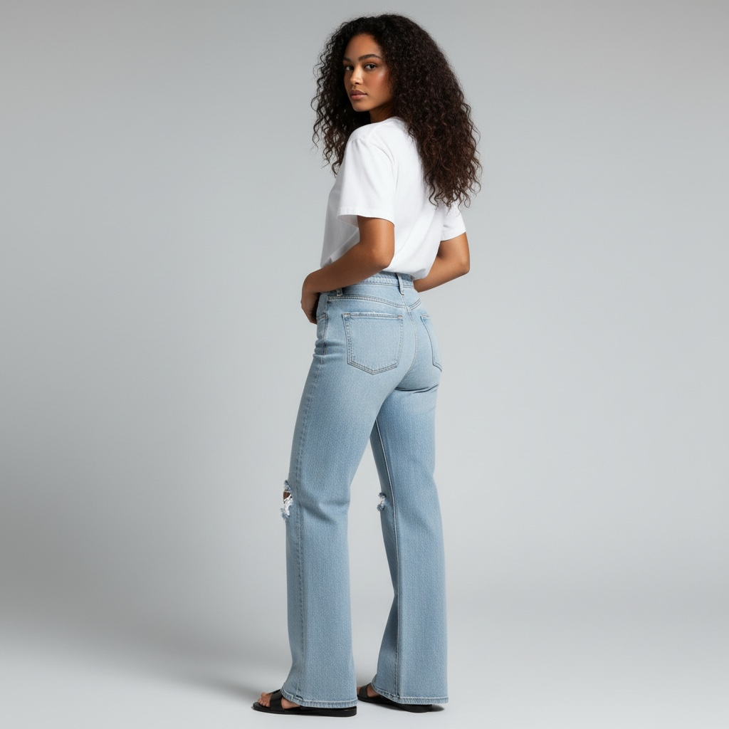 Embrace retro elegance with these super high-rise flare jeans, a modern interpretation of 90's silhouettes. Crafted from comfort stretch denim, they offer both style and wearability with their flattering high-rise waist and flowing flare leg. Thoughtfully distressed details add authentic vintage character while the full-length cut provides a polished, elongating effect. Perfect for those seeking timeless appeal with contemporary comfort.