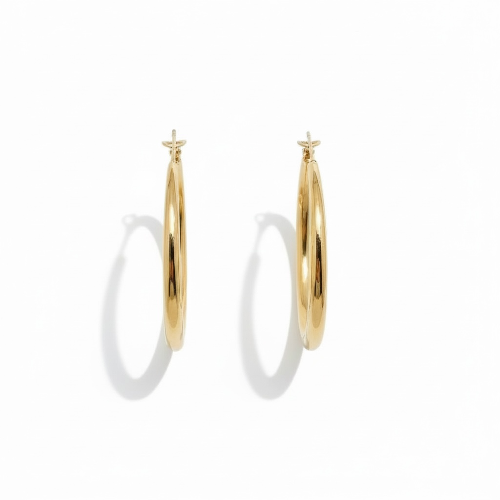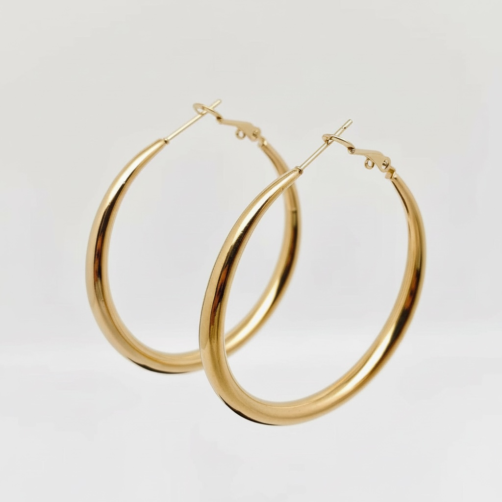 Crafted from premium stainless steel with an impeccable high-polish finish, these 18K gold-plated hollow hoop earrings deliver timeless elegance. The lustrous surface catches light beautifully, while the lightweight construction ensures comfortable all-day wear. A refined choice for those who appreciate quality craftsmanship and enduring style