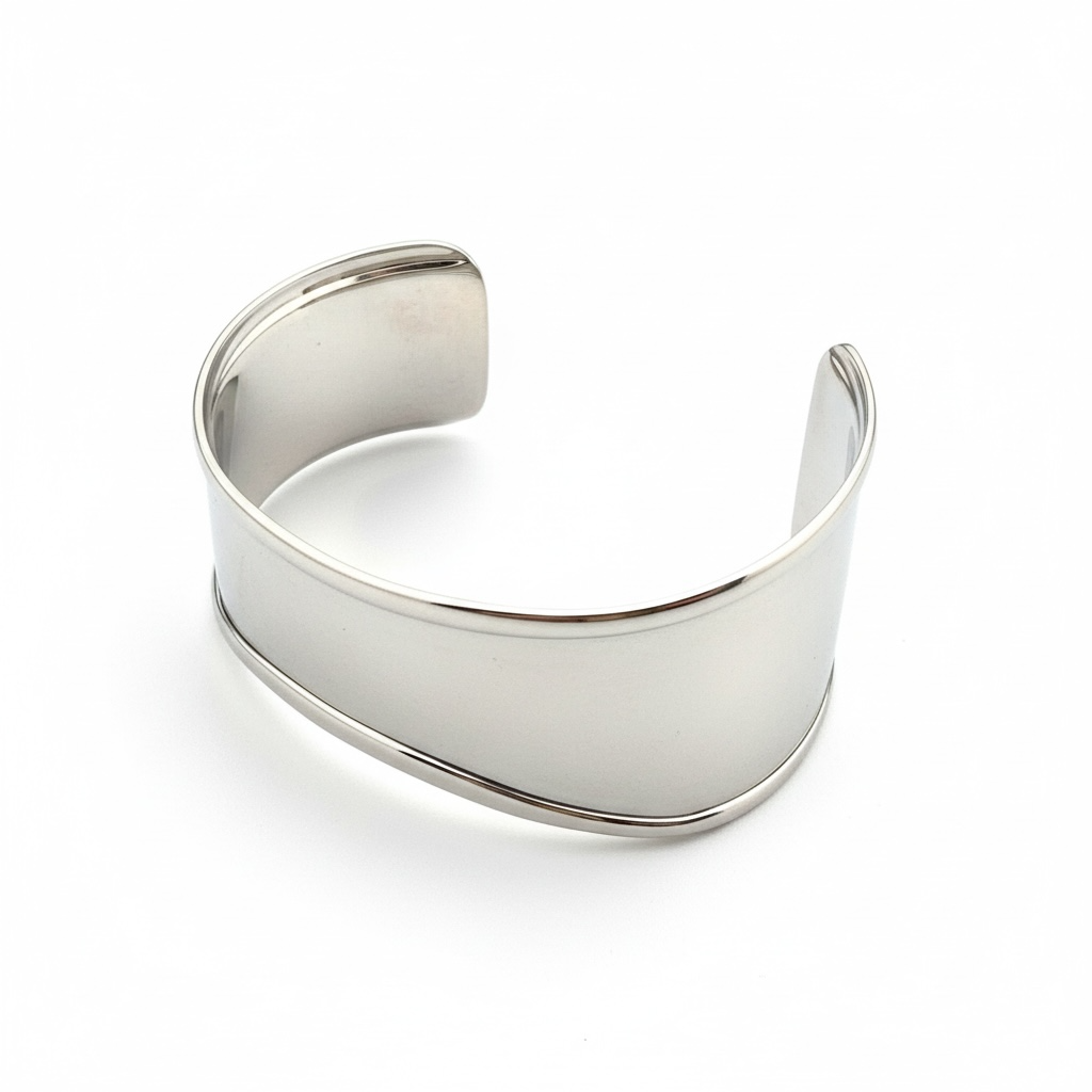 This striking cuff bracelet showcases an irregular glossy wave design crafted from premium stainless steel and finished with 18K gold plating. Each piece undergoes meticulous vacuum electroplating and hand polishing to achieve a luminous, mirror-like surface. Lead-free and hypoallergenic, it's designed for sensitive skin and everyday elegance. An exceptional choice for those seeking refined, contemporary jewelry or a meaningful gift.