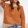 Taking a classic to a new luxe level, this stunning color block sweater is featured in a round neck with side slit detail and loose fit. Soft and comfy fabric to wear on. Designed to add the perfect finishing touch to absolutely any look. This classic color-block sweater top adds the perfect cozy to every outfit. color block sweater top, long sleeve, round neckline, loose fit, layering piece, cozy sweater, side slit, soft textured, dropped shoulder, multi color sweater, knit pullover, chunky sweater.